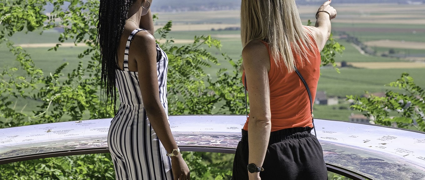 From the panoramic viewpoint, time seems to be suspended: a bird’s eye view of the vineyard and its villages, the work of the men and the evolution of the vineyard over the seasons.