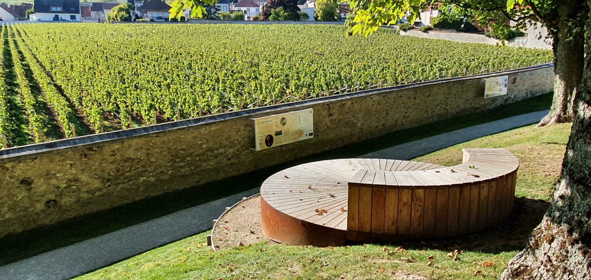 At the end of about sixty wooden steps, the Pierre Cheval belvedere invites you to contemplate with, among other things, a view of the Avenue de Champagne d’Epernay and the historic hillsides of Hautvillers to Mareuil-sur-Aÿ inscribed by UNESCO on the World Heritage List. Interpretation panels provide an understanding of the fauna, flora, geology, history and landscape.
