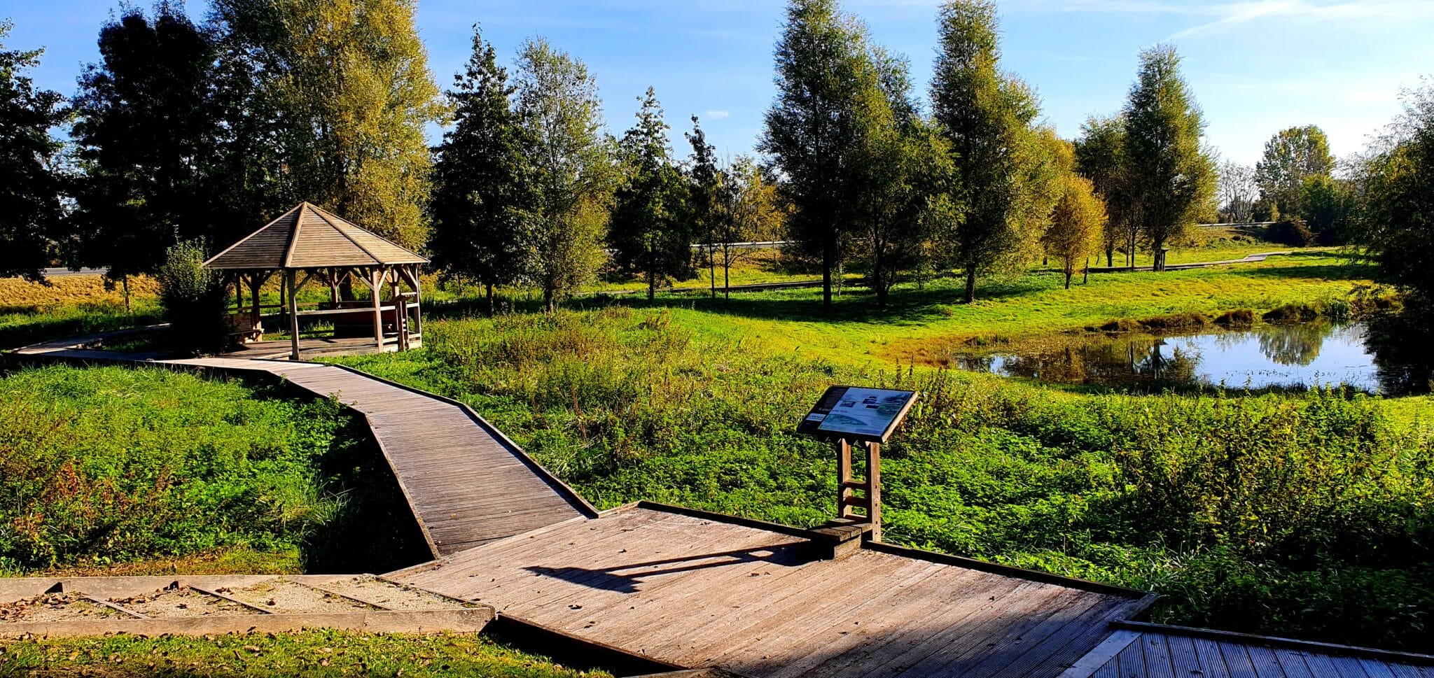 CULTIVATED IN PLACES AND SHAPED BY THE HAND OF MAN, THIS MEADOW, FLOODED IN WINTER AND LUSH IN SUMMER, NESTLED IN THE HOLLOW OF THE MARNE VALLEY, GIVES PRIDE OF PLACE TO THE LOCAL BIODIVERSITY, BETWEEN MARSH IRISES, RUSHES AND REEDS. AN INTERPRETATION TRAIL TO FOLLOW ALONG A WOODEN PONTOON, PROVIDES KNOWLEDGE ON THE FAUNA AND FLORA OF THIS 3.5 HECTARE AREA.