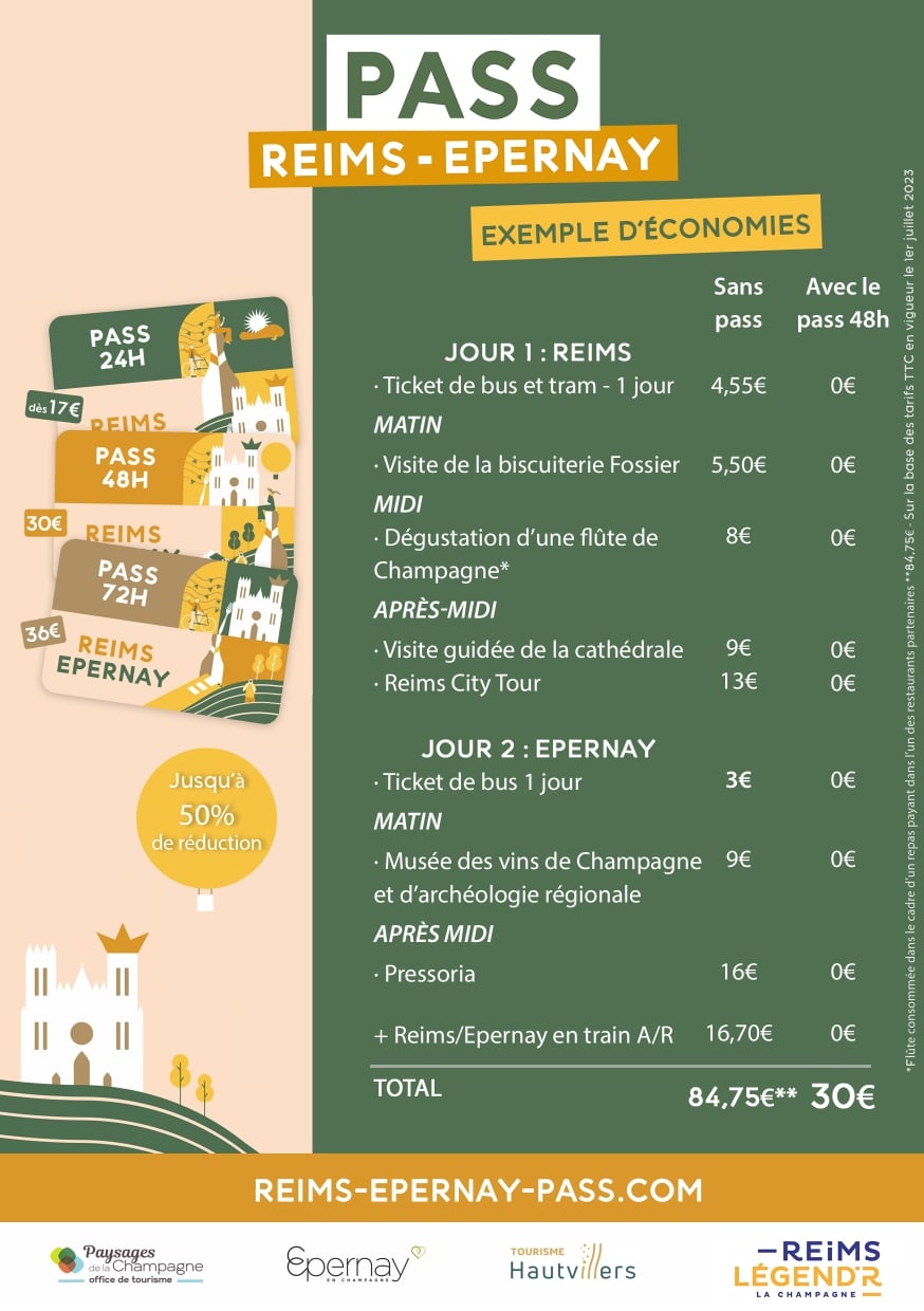 Pass disponible également à l’accueil des Offices de Tourisme d’Epernay et Reims